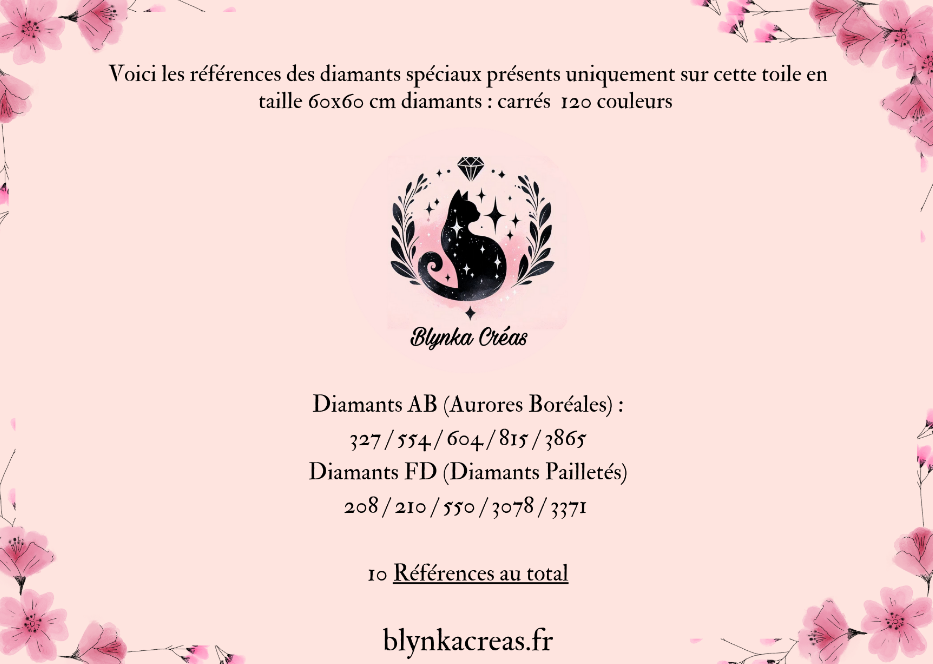 Nous tenons à souligner que toutes nos toiles sont créées avec un charting manuel, assurant ainsi une précision et une qualité inégalées dans chaque kit. Faites votre choix et laissez libre cours à votre créativité avec Blynka Créas !